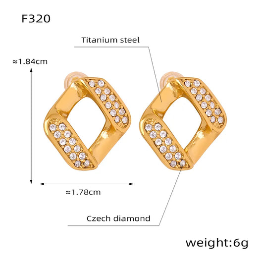 18K Gold Plated Square Heart Zircon Necklace & Earrings Set