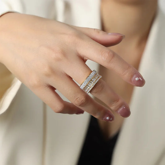 Gold Plated Stainless Steel Color-Block Zircon Ring