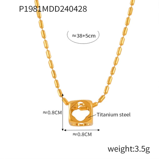 Gold-Plated Hollow Quadrilateral Pendant Necklace