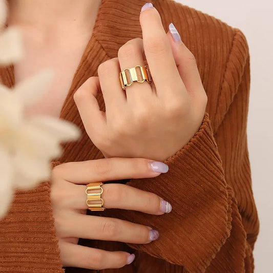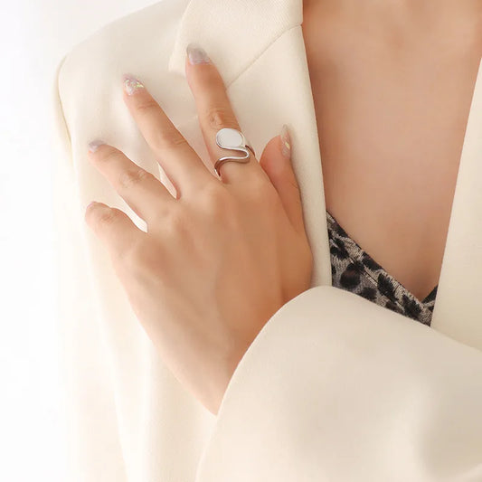 18K Gold Plated Stainless Steel Oval Opal Ring
