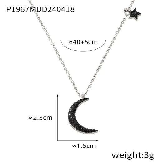 Rose Gold Star & Moon Rhinestone Pendant Necklace