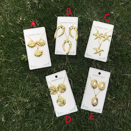 Gold Starfish Spiral Shell Pearl Necklace Set