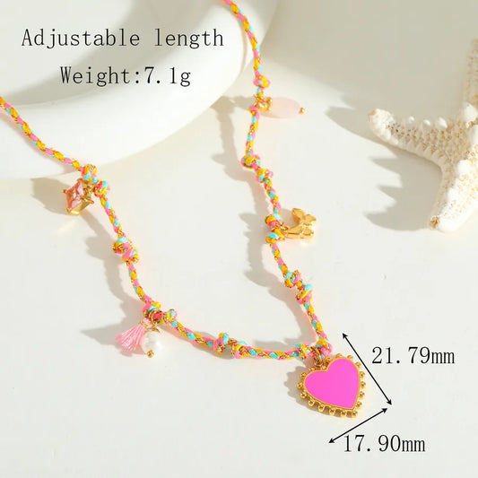 Gold-Plated Heart & Pentagram Pearl Charm Necklace