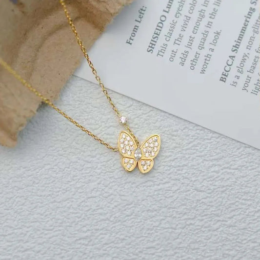 Gold-Plated Butterfly Zircon Pendant Necklace