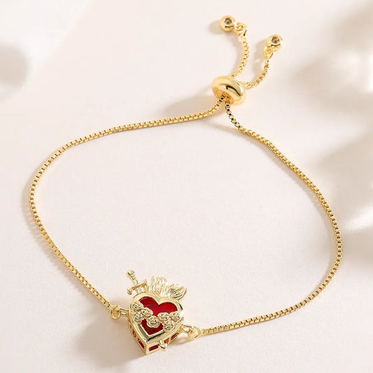 Red Heart Eye 18K Gold-Plated Zircon Open Ring