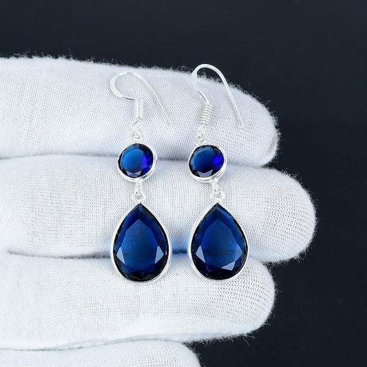 Sapphire Serenity – Sterling Silver Dangle Earrings