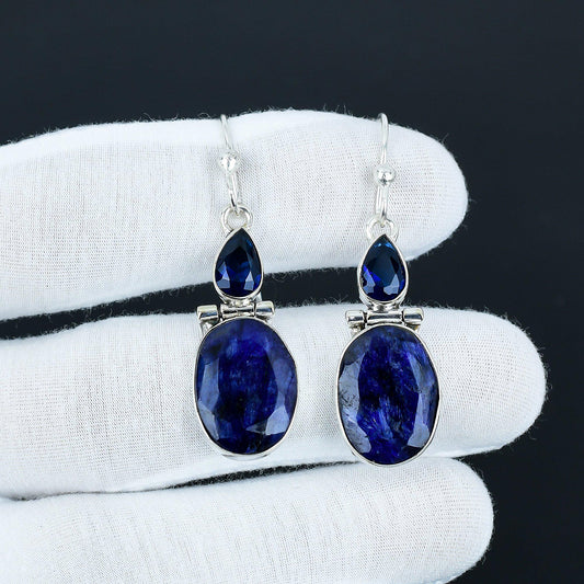 Azure Elegance – Blue Sapphire & Silver Earrings
