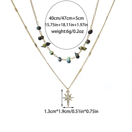 14K Gold Plated Double Layer Star & Heart Natural Stone Necklace