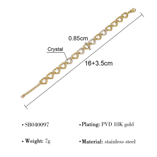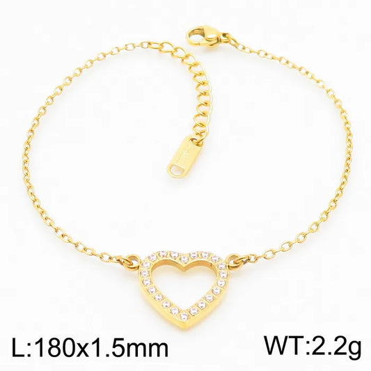 14K Gold-Plated Stainless Steel Heart Bracelet