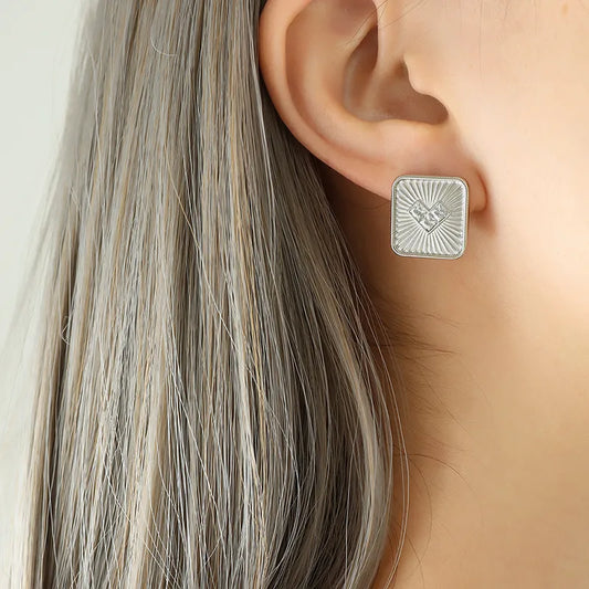 18K Gold Plated Square Heart Zircon Necklace & Earrings Set