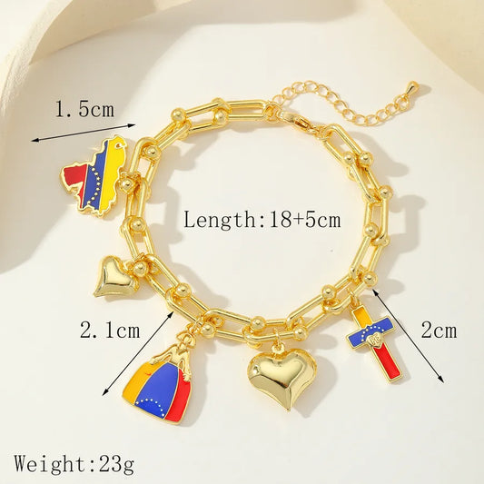 18K Gold-Plated Copper Cross & Heart Necklace & Bracelet