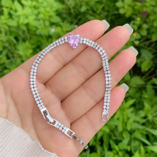 18K Gold Plated Heart & Flower Zircon Tennis Bracelet