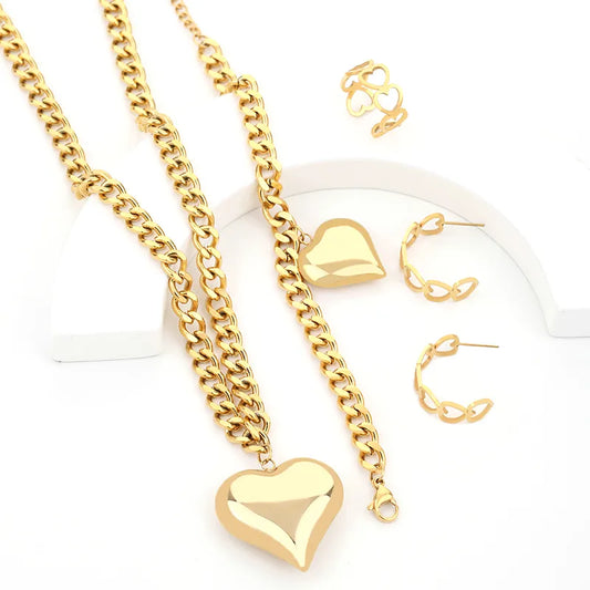 14K Gold-Plated Titanium Steel Heart Jewelry Set