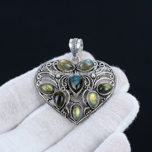 Aurora Heart – Rainbow Agate & Amber Pendant