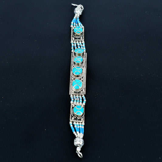 Blue Turquoise Gemstone Sterling Silver Bracelet