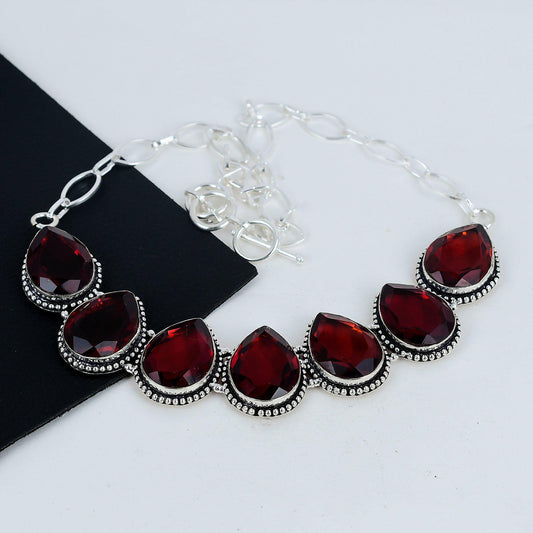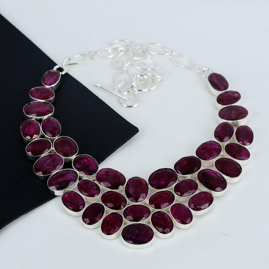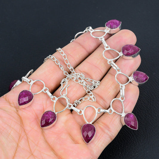 Kashmir Ruby Sterling Silver Necklace & Bracelet Set
