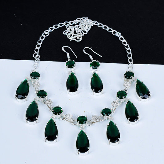 Green Tourmaline Sterling Silver Necklace & Earrings Set