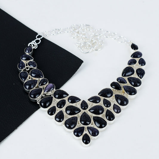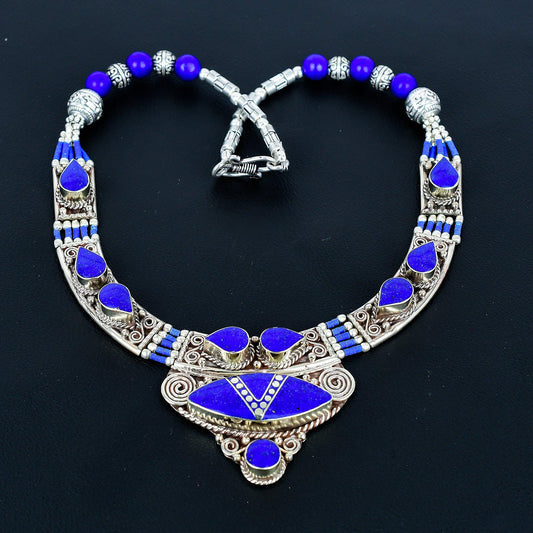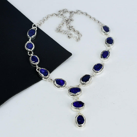 Blue Lapis Lazuli Gemstone Sterling Silver Necklace