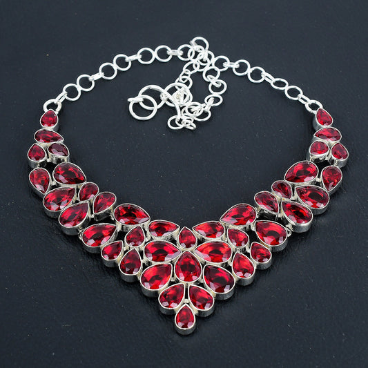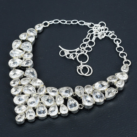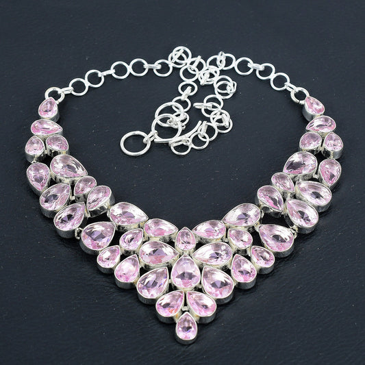 Pink Rose Quartz & Blue Sapphire Sterling Silver Necklace