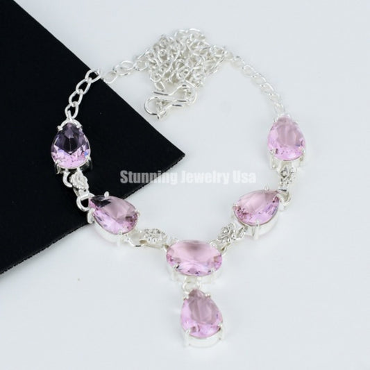 Pink Kunzite Gemstone Sterling Silver Necklace