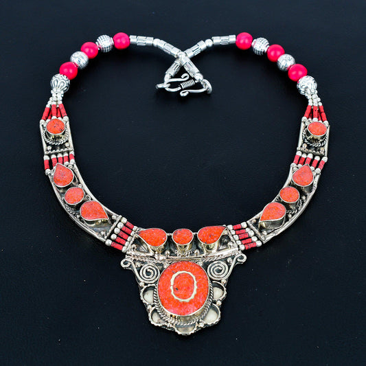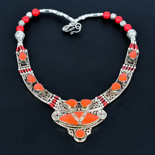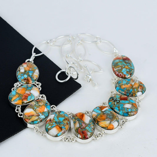 Orange Spiny Oyster Turquoise Gemstone Necklace