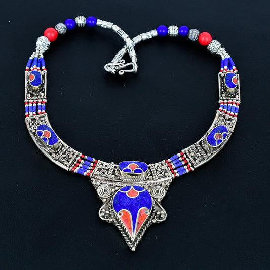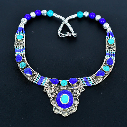 Turquoise Coral Lapis Lazuli Gemstone Necklace