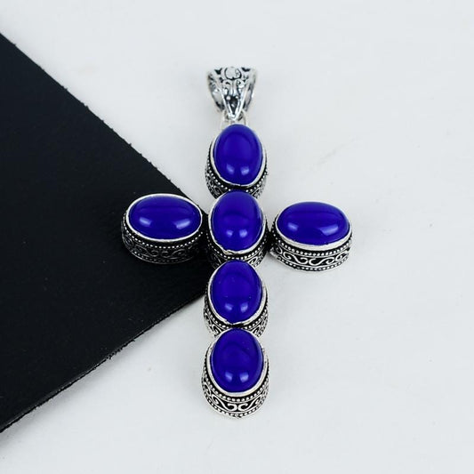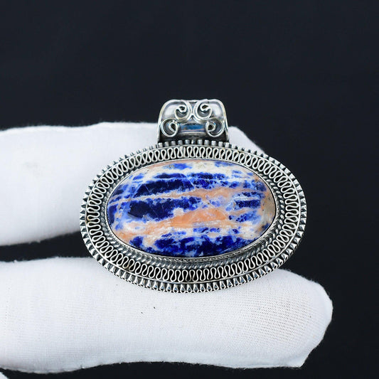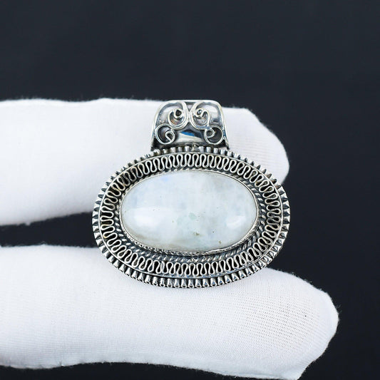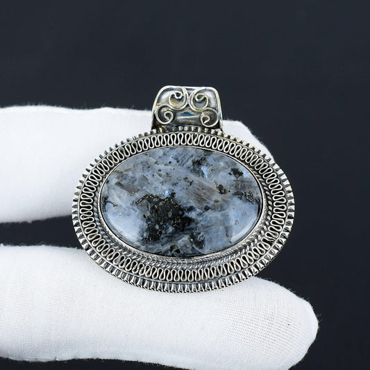 Rainbow Moonstone & Blue Topaz Silver Pendant