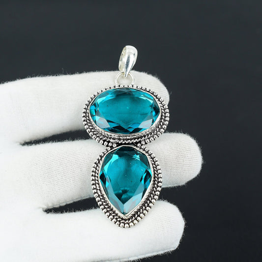 Blue Apatite & Swiss Blue Topaz Gemstone Pendant