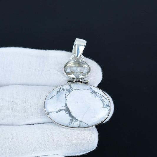 White Howlite & Blue Aquamarine Silver Pendant