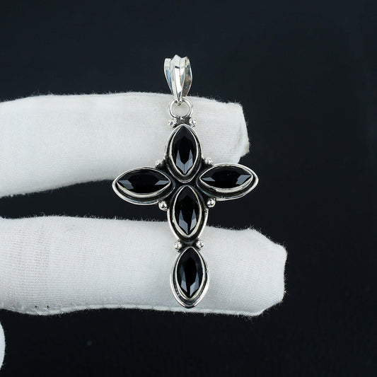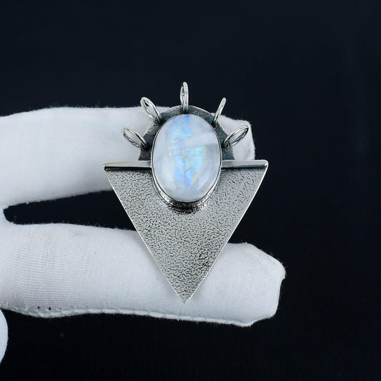 Sterling Silver Rainbow Moonstone Cross Pendant