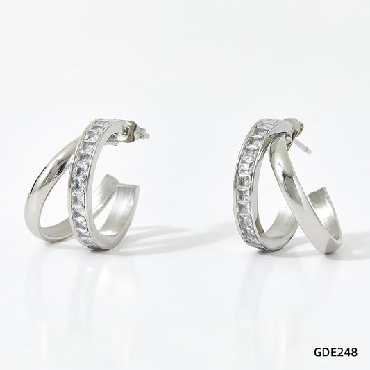 Silver Heart-Shaped Stainless Steel Drop Earrings