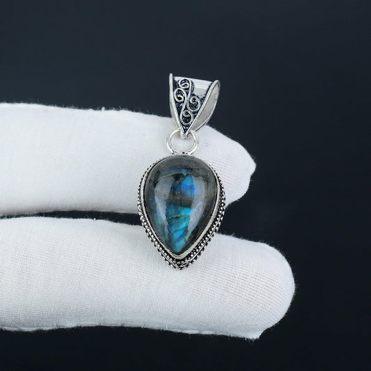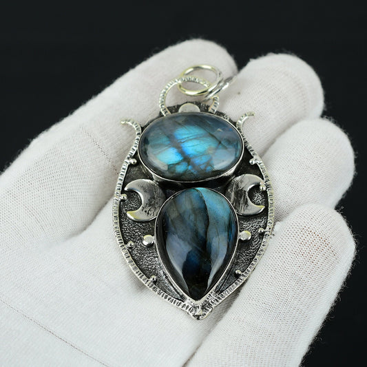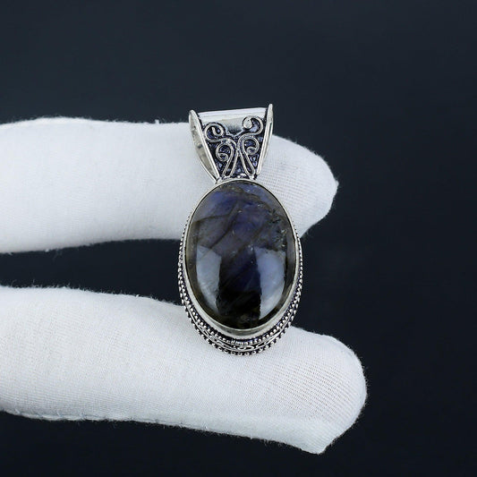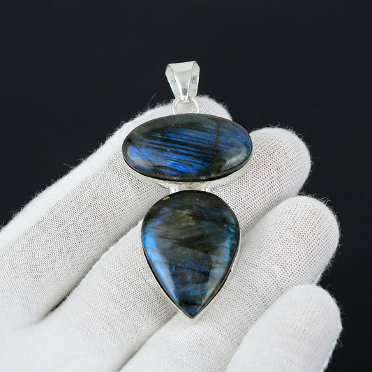 Purple Amethyst and Blue Labradorite Gemstone Pendant