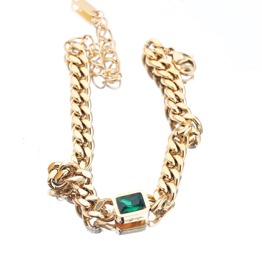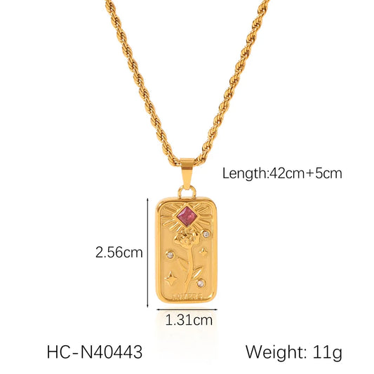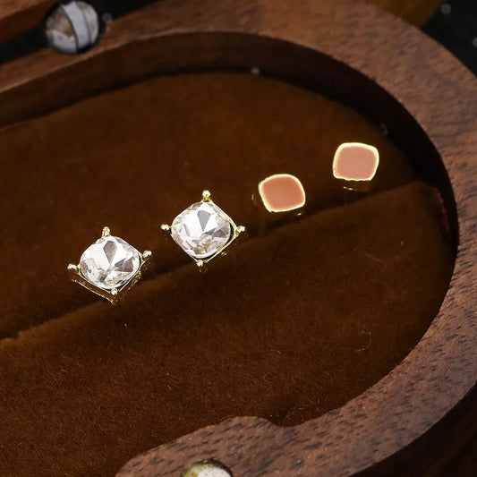 18K Gold Plated Square Heart Zircon Necklace & Earrings Set
