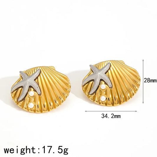 18K Gold Plated Starfish & Conch Shell Bracelet
