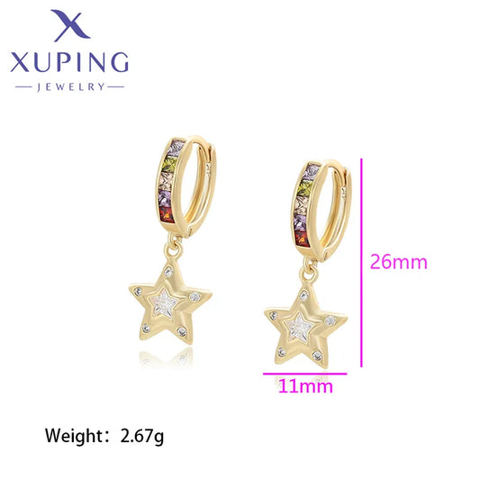 Gold Plated Star & Moon Zircon Drop Earrings