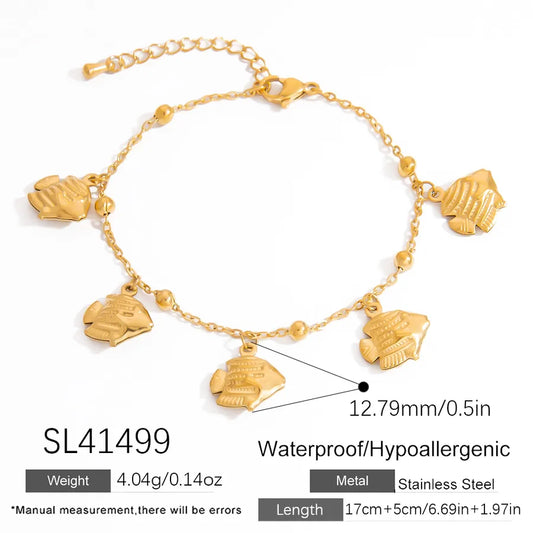 Gold Plated Starfish Conch Heart Beaded Chain Bracelet
