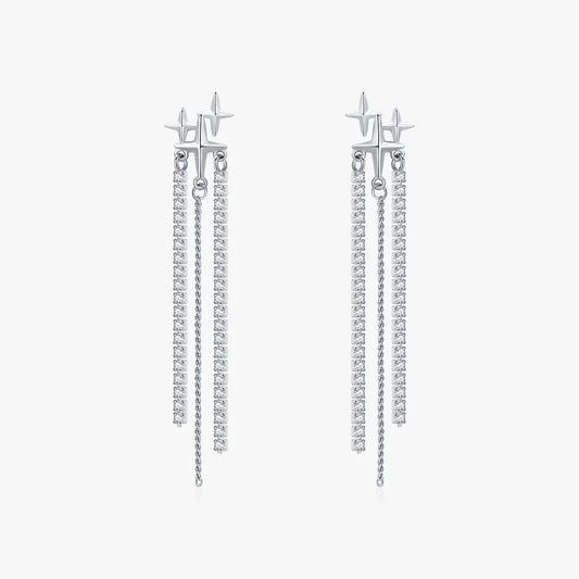 Silver Star Zircon Drop Earrings