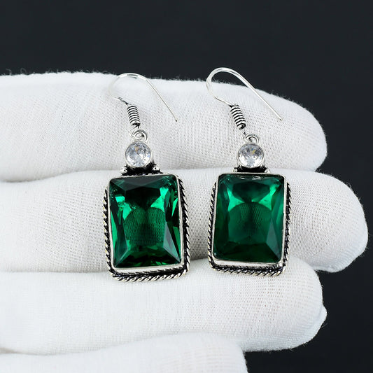 Green Tourmaline & White Topaz Sterling Silver Earrings