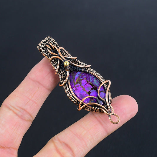 Turquoise Gemstone Wire Wrapped Copper Cuff Bracelet