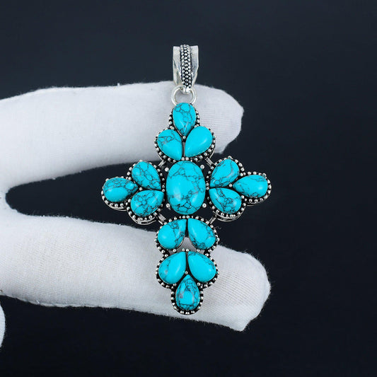 Blue Turquoise and Aquamarine Gemstone Pendant