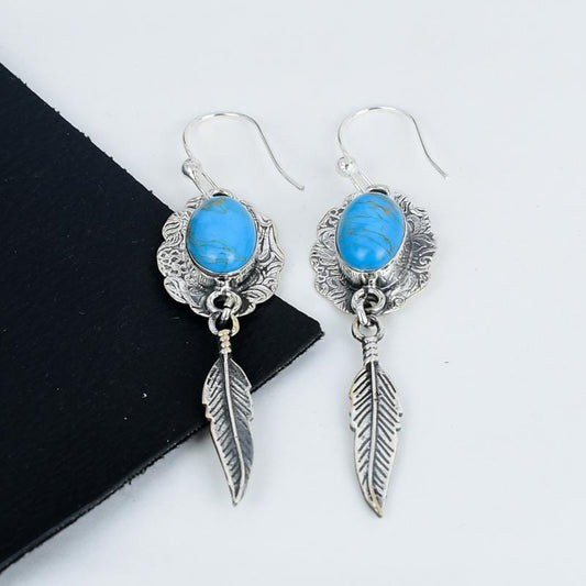 Blue Sleeping Beauty Turquoise Gemstone Dangle Earrings