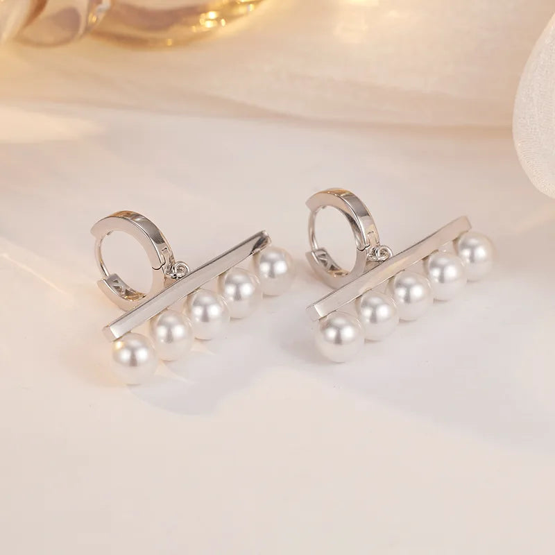 - Adorned with five lustrous faux pearls, offering a timeless appeal.