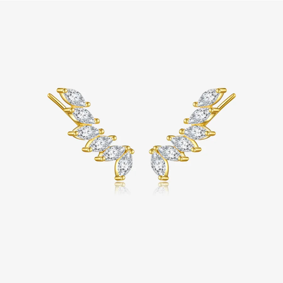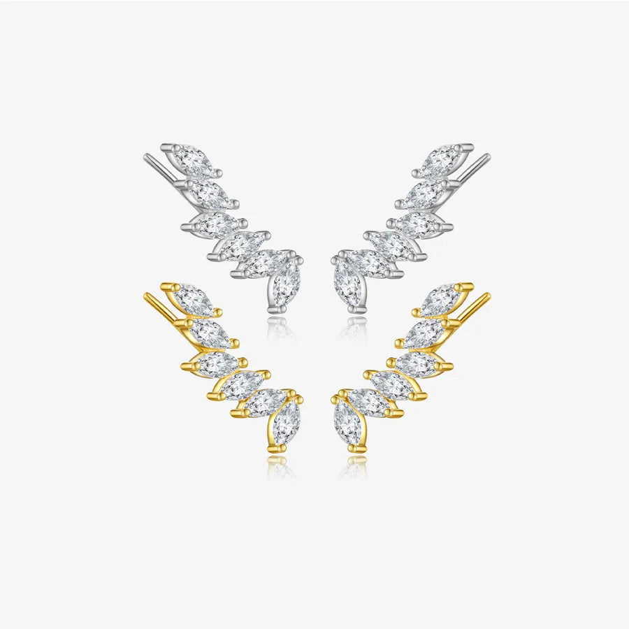 Elevate your elegance with our stunning Leaf Climber Earrings, available in both silver and gold finishes. Each earring features a series of intricately arranged marquise-cut cubic zirconia stones, designed to wrap delicately along your ear for a sophisticated and chic look.