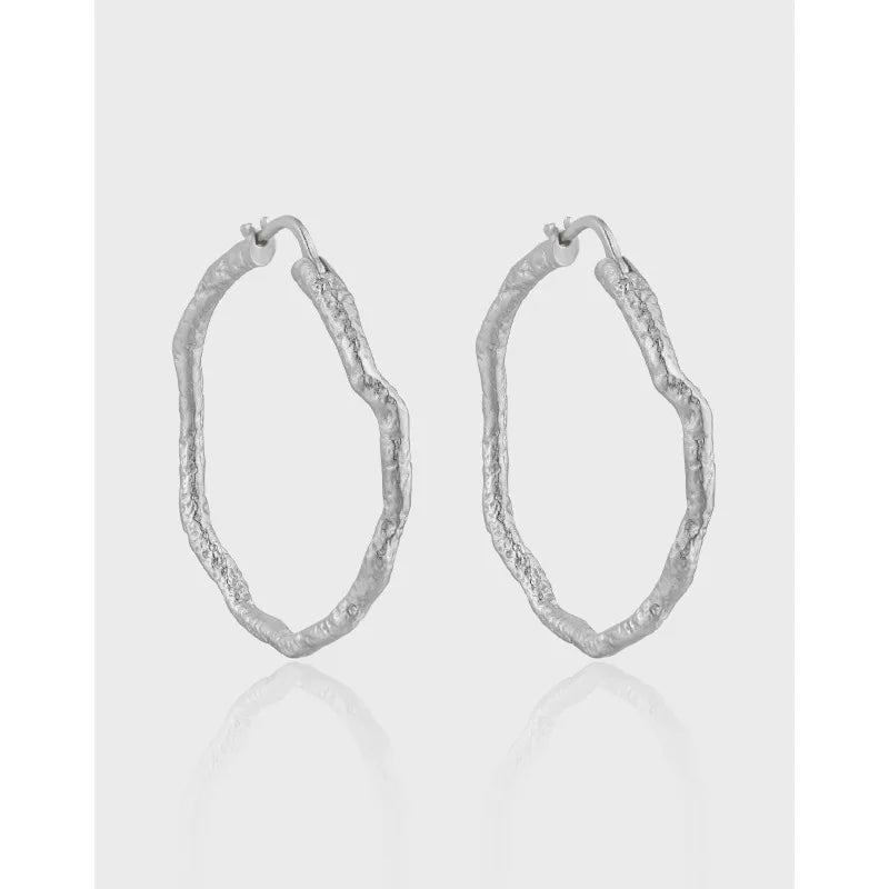 Elevate your style with these stunning textured hoop earrings. Crafted with precision, their organic shape exudes elegance and sophistication.
