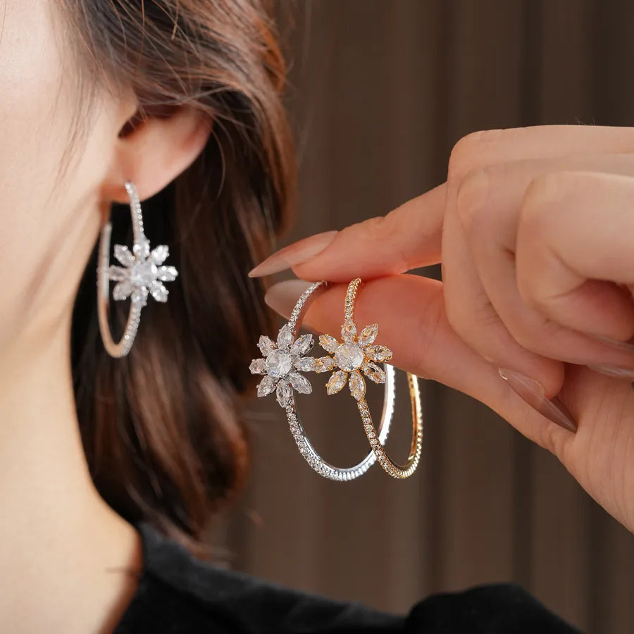Experience elegance with our stunning Floral Sparkle Hoop Earrings. Designed to capture light and attention, these exquisite hoops feature intricate floral patterns embellished with shimmering stones.