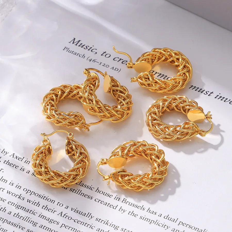 Featuring a unique braided design, these earrings blend elegance with modern charm.