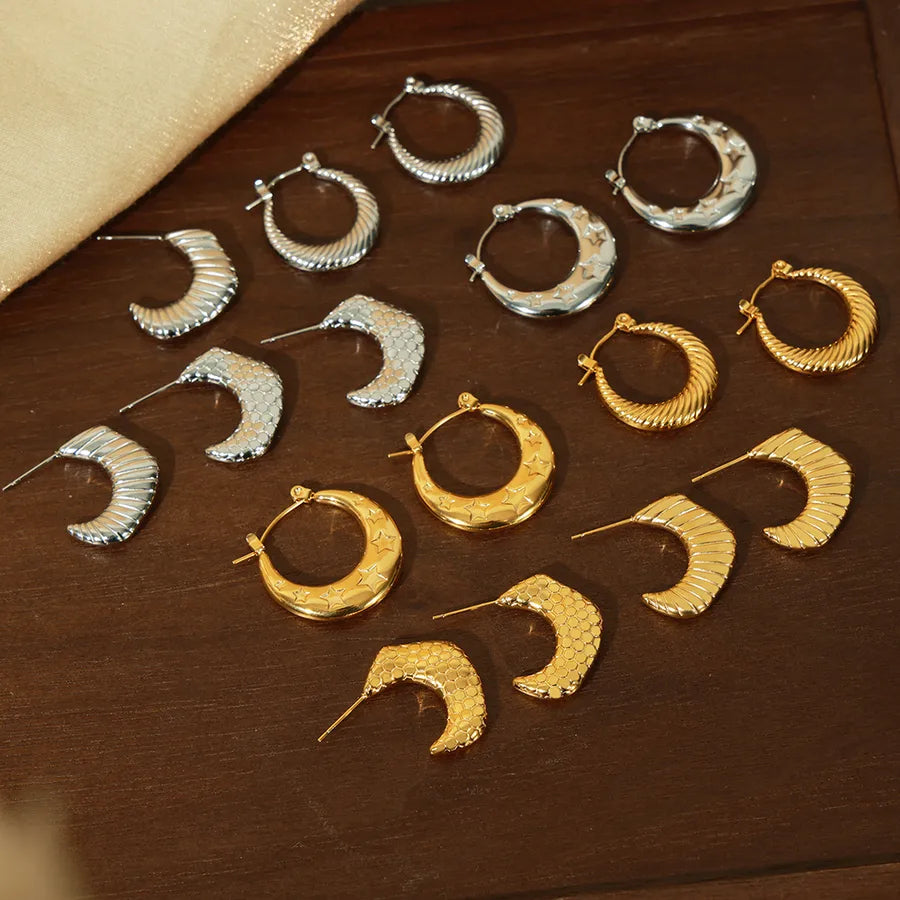 Enhance your elegance with our exquisite Moon & Star Hoop Earrings Set, a perfect blend of celestial charm and timeless style. This set features beautifully crafted crescent moon and star designs, embodying a unique blend of sophistication and whimsy.