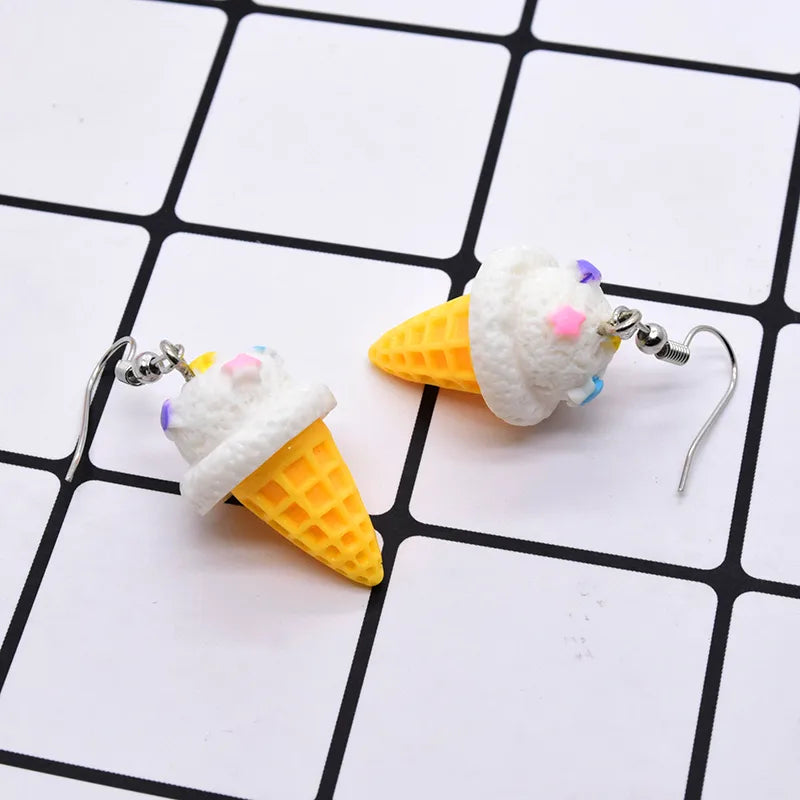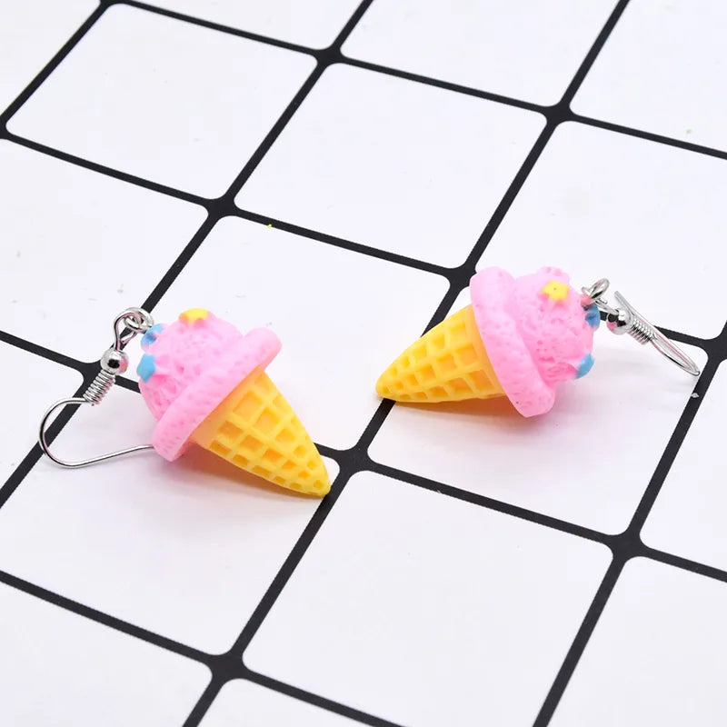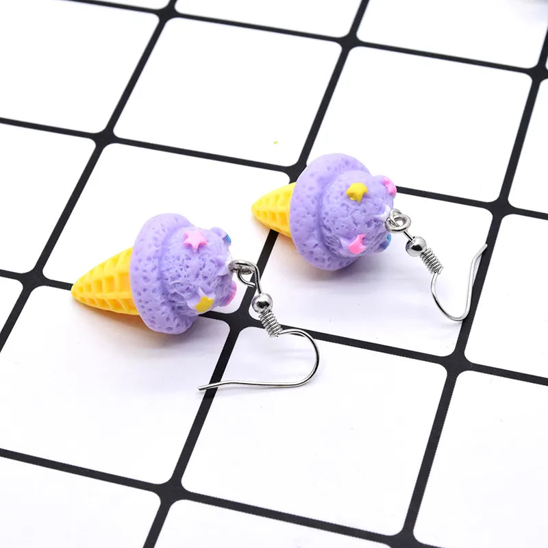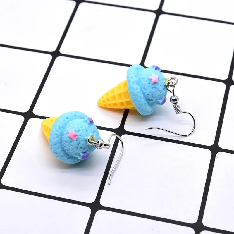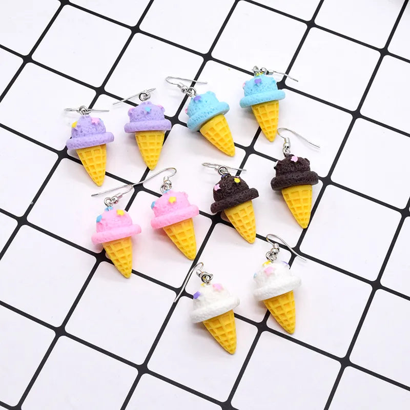 Each pair features a playful design, showcasing a scoop of colorful "ice cream" on a classic cone.