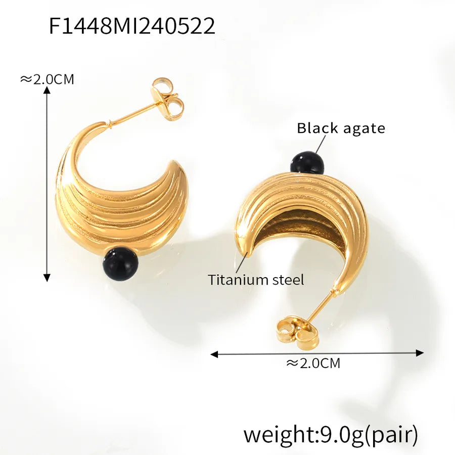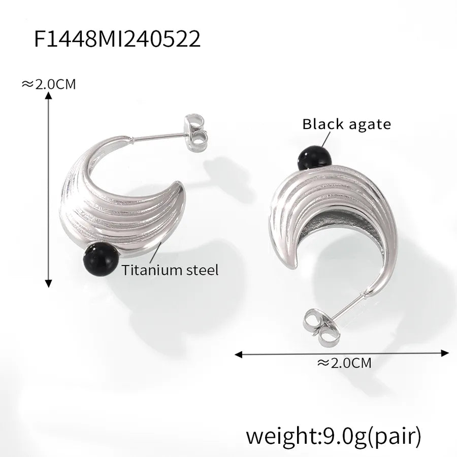 Design: The earrings showcase a chic crescent shape adorned with either a pearl or black accent stone, adding a touch of contrast and intrigue.