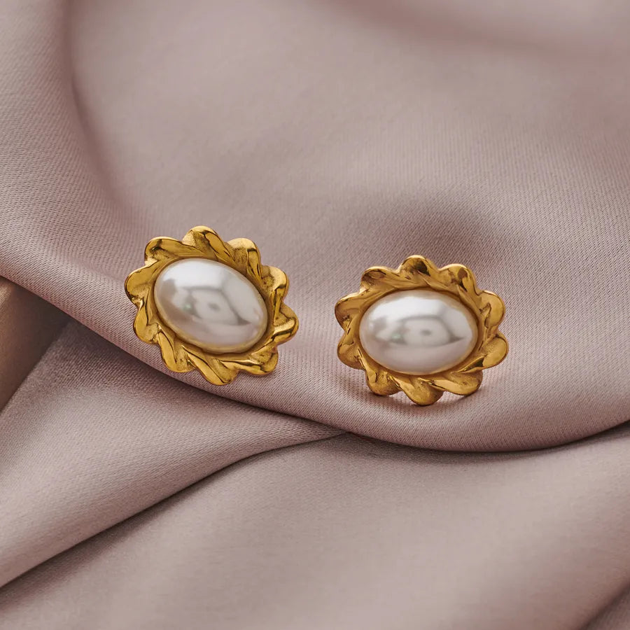 Embrace sophistication with our stunning Elegant Pearl Flower Earrings. Each piece features a lustrous faux pearl set in a radiant golden floral design, combining timeless elegance with a touch of nature's charm.